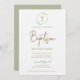 Invitation Aquarelle moderne Wreath Doré Croix dorée Baptême