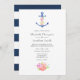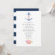 Invitations de mariage à thème marin et blanc tendance avec ancre florale aquarelle et bande marine à l'envers.