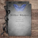 Laissez-vous séduire par l'allure mystérieuse de votre journée avec ce design sombre et minimal. Ce design simple et foncé d'invitation à la douche de mariage présente un arrière - plan d'un noir mystérieux lavage à l'aquarelle, avec un simple papillon bleu en haut, représentant le mystère de la nuit et de la transformation. Le texte apparaît sur un habillage ovale blanc pâle, ce qui donne à l'invitation une apparence obstinément mystérieuse et belle. Le dos transporte le simple arrière - plan de lavage à l'aquarelle noire. Créé par Simply Farmhouse Press.