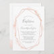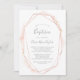 Cette invitation au baptême géométrique en or rose est parfaite pour un baptême de bébé élégant. Le design fantaisiste est composé d'aquarelle rose vif neutre avec de belles formes géométriques et parties scintillant en feuille d'or faux rose.