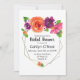 Un vaporisateur vibrant de fleurs dans les tons orange, rose baies, violet et verdure ornent cette invitation à la douche nuptiale féminine.