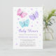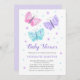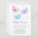 Invitation Aquarelle papillon Baby shower Aqua violet