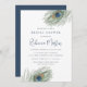 Les magnifiques invitations à la douche nuptiale comprennent une seule plume paon dans des aquarelles douces, avec les détails de votre événement dans un mélange de bloc et de lettres de script. Un choix élégant pour les mariées modernes, ce design est léger et raffiné sans être étouffant et intègre une typographie classique et un élément aquarelle tendance. La carte passe à la coordination bleu solide.