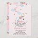 Aquarelle petit poney, étoiles, lune et nuages sur arrière - plan rose.Ces invitations de douche bébé sont facilement customisées pour votre événement en ajoutant simplement vos détails.