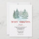 Elégant design aquarelle avec une forêt d'hiver de pins enneigés avec un message festif "Joyeux Noël" en calligraphie rouge classique. Une oeuvre de vacances intemporelle qui saisit la beauté de la nature et la chaleur de la période de Noël.