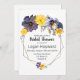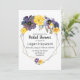 Un jet spectaculaire de fleurs dans les tons jaune, gris et prune ornent cette invitation à la douche nuptiale féminine.