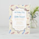 Une invitation d'anniversaire élégante et sophistiquée. Un motif composé de plumes à l'aquarelle avec des rayures, des taches et des motifs unis variés dans des tons de bleu, rose, orange et marron. Des branches et des brindilles avec des feuilles et des chatons décorent également le design. Le fond est d'une couleur crème unie. Un cadre orné et fantaisiste avec une bordure dorée est superposé par-dessus. Entrez vos coordonnées d'anniversaire sur le fond blanc uni au centre de ce cadre.