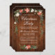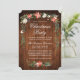 Elégante aquarelle Poinsettia Floral Christmas Party Invitation inclut de belles poinsettias rouges aquarelle, la végétation botanique, feuillage d'hiver, baies sèches, roses blanches, coton, cônes de pin et baies bleues. Bois rustique.