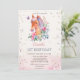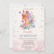 Cette première invitation anniversaire avec poney aquarelle et fleurs.