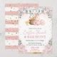 Elégant Aquarelle Printemps Rabbit de Pâques et fleurs roses design avec parties scintillant d'or confetti avec arrière - plan rayures violettes