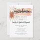 Une invitation à baby shower de style Boho avec un arc-en-ciel aquarelle avec des rayons de parties scintillant dorée, et un petit rayon de soleil sur le thème du chemin. Un style bohème audacieux aux couleurs terreuses.