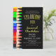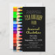 Ce design anniversaire de enfant amusant d'invitation de fête comporte une colonne de crayons d'aquarelle arc-en-ciel. Tous les détails de la fête sont sur le devant avec la couleur jaune de police pour la partie et les informations de nom. Remplissez les champs de texte modèle sous Personnaliser, supprimez les informations ou cliquez sur personnaliser pour sélectionner le style, la taille et la couleur de police que vous préférez.