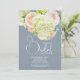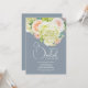 Les invitations au brunch et à la douche à bulles présentent vos détails en lettres chic sur un arrière - plan bleu poussiéreux (ou toute couleur que vous choisissez) agrémenté de belles fleurs d'aquarelle - hydrangées blanches et vertes, roses roses et crème, marguerites, petites tiges et feuilles. CORRESPONDRE des articles dans notre magasin.