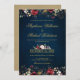 Élégante et moderne carte d'invitation de mariage romantique à l'aquarelle. Les bandes ventrales présentent un bouquet de roses bordeaux / marsala, rose blush, violettes, roses aquarelles pêche avec feuillage doré / or assorti sur fond bleu marine. Parfait pour un mariage d'automne / mi-été. Veuillez trouver plus de modèles et de variations assortis dans ma boutique "blissweddingpaperie". Et n'hésitez pas à me contacter pour une personnalisation ou des articles assortis supplémentaires