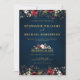 Élégante et moderne carte d'invitation de mariage romantique à l'aquarelle. Les bandes ventrales présentent un bouquet de roses bordeaux / marsala, rose blush, violettes, roses aquarelles pêche avec feuillage doré / or sur fond bleu marine. Parfait pour un mariage d'automne / mi-été. Veuillez trouver plus de modèles et de variations correspondants dans ma boutique "blissweddingpaperie". Et n'hésitez pas à me contacter pour une personnalisation ou des articles assortis