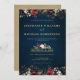 Invitation Aquarelle romantique bordeaux rouge marine or flor