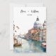 Bienvenue dans le monde enchanteur de Venise, Italie, où chaque coin est orné de beauté et d'histoire. Notre invitation de mariage de destination vous transporte au coeur de cette ville romantique, capturant son horizon fascinant et le charme intemporel des tuiles italiennes. Imaginez-vous debout sur les rives du Grand Canal, en contemplant le majestueux horizon vénitien. Notre invitation présente des graphiques délicats en aquarelle représentant les dômes, les tours et les palais emblématiques qui ornent l'horizon de la ville. Les tons chauds de terre cuite, d'ocre et d'or rose se marient harmonieusement, reflétant l'éclat enchanteur du coucher de soleil vénitien. Mais ce qui distingue véritablement notre invitation, c'est le soin exquis apporté aux carreaux italiens, qui rappelle les motifs complexes que l'on trouve dans les palais et les piazzas historiques de Venise. Ces motifs élégants, méticuleusement crées dans des bleus, des verts et des dorés riches, ornent les frontières de l'invitation, en l'imprégnant d'un charme et d'une sophistication du Vieux Monde.