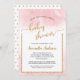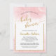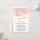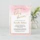 Cette invitation à la fête du baby shower virtuel comporte un texte de calligraphie de parties scintillant en faux or sur un arrière - plan d'aquarelle rose. Le texte personnalisé vous permet d'ajouter les détails de votre douche.