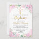 Aquarelle rose Floral or Script Girl Baptême Invitation