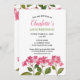 Invitation de fête d'anniversaire conçue à partir d'aquarelle fleurie illustration de lacecaps d'hydrangée rose douce avec leurs couleurs vives, entourés de feuillage vert foncé autour d'eux. Le design est d'un arrière - plan blanc clair. Personnalisez-le à Zazzle avec vos propres textes.