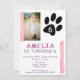 Aquarelle rose mignonne Empreinte de patte Enfants Photo Invitation de fête d'anniversaire. L'invitation a des traits d'aquarelle rose et un empreinte de patte noir avec un numéro d'âge - vous pouvez changer l'âge. Personnalisez cette mignonne invitation d'anniversaire avec la photo de votre enfant - insérez votre photo dans le modèle. Modifiez toutes les autres informations sur l'invitation. Idéal pour la fête d'anniversaire d'une fille.