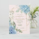 Invitation Aquarelle rose pâle Hydrangea Mariage bleu foncé