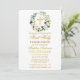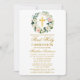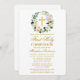 Elégante aquarelle fleurie Première communion sacrée Invitation comprend roses roses, fleurs blanches et verdure. Croix d'or.