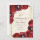 Cette invitation chic florale à la fête du 40e anniversaire présente des roses rouges d'aquarelle sur un arrière - plan doré brillant avec un cadre doré faux ainsi que tous les détails de votre fête pour personnaliser.