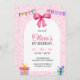 Cette invitation à l'arc de premier anniversaire, douce et simple, rose, est parfaite pour le premier anniversaire de votre petite fille. Le design comporte un arc rose avec les coeurs et les confettis, Cette invitation est facile à customiser avec le nom de votre enfant, l'âge et les détails de la fête.