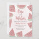 Une invitation moderne et chic à l'anniversaire pour votre petite fille sur le thème de la pastèque rose vif.