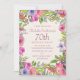 Invitation de 70e anniversaire pour les femmes avec de jolis fleurs sauvages d'aquarelle de style boho en violet et rose avec verdure et feuillage. Personnalisé avec votre propre texte. Contactez-moi pour obtenir de l'aide sur vos personnalisations ou pour demander des produits Zazzle correspondants ou coordonnés supplémentaires pour votre groupe.