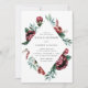 Invités Invitations à votre mariage avec nos invitations uniques de mariage floral aquarelle! Les invitations à un mariage à fleurs présentent vos détails mariages encadrés de roses d'aquarelle rouge et blanc, de fleurs violettes et de feuillage vert. L'invitation revient à un arrière - plan d'aquarelle vert foncé ou à une couleur de votre choix.