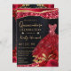Célébrez son 15ème anniversaire dans un style inoubliable avec cette luxueuse invitation de Quinceañera rouge et or. Doté d'une robe rouge éblouissante, d'une parties scintillant chatoyante et d'élégants détails floraux, ce design donne le ton parfait pour une nuit de glamour et de joie. Personnalisez avec vos détails de l'événement pour créer un gardien que les invités vont chérir. Idéal pour les Quinceañeras traditionnelles, les douces 15 fêtes d'anniversaire, ou toute fête d'anniversaire formelle où le raffinement se rencontre étincelant. Un superbe thème rouge et or pour un look régal. Une typographie élégante pour une touche intemporelle. Texte et mise en page entièrement personnalisables. Parfait pour Quinceañeras, Sweet 15, ou anniversaires jalons. Faites briller sa fête aussi brillamment qu'elle le fait avec cette inoubliable invitation