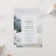 Eléments : aquarelle peinte du lac de montagne rustique en hiver; élégantes polices serif et sans serif. Couleurs : bleu, vert, gris, blanc, blanc cassé. Thèmes : montagnes, lacs, mariage extérieur, mariage d'hiver, élégant, rustique, impressionniste, aquarelle, montagnes enneigées. Collection : Collection de Mariages d'aquarelle de Rustic Mountain Lake. Type de produit : Invitation classique - Vertical