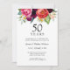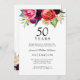 Célébrez cette étape mémorable, un 50e anniversaire de mariage avec une merveilleusement féminine et boho rustique invitation de soirée élégante. Ce design a une somptueuse palette de couleurs riches en terre cuite, pêche profonde, rouge bordeaux, violet, turquoise et jaune. Les jolis éléments botaniques aquarelles ont un charme organique d'inspiration nature et faire pop l'invitation avec style. Le modèle de texte est entièrement personnalisable pour personnaliser avec n'importe quel libellé que vous souhaitez utiliser. Le verso de l'invitation a un modèle photo en forme de carré pour télécharger une photo de mariage préféré ou une autre photo du couple heureux avec un modèle texte sous-titré à personnaliser également.