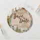 La carte ronde recto verso est la carte Save the Date parfaite pour tout mariage à thème rustique. Ce magnifique design est à la fois romantique et rustique et fonctionne pour des événements rustiques, forestiers ou de montagne. La conception comprend une tranche ronde de disques de grains de bois, des fleurs sauvages et des arbres forestiers.
