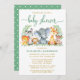 Invitation Aquarelle Safari Animaux Douche Vert Script Or