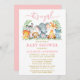 Invitation Aquarelle Safari Animaux Fille Rose Script Douche