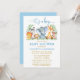 Invitation Aquarelle Safari Animaux Garçon Douche Bleu Or
