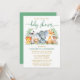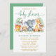 Invitation Aquarelle Safari Animaux Vert Script Douche Or