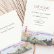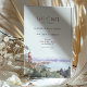 Célébrez vos noces à venir avec l'élégance de l'horizon de San Francisco. Cette invitation Save the Date, magnifiquement conçue, présente un délicat rendu aquarellé de l'emblématique Golden Gate Bridge, sur fond de célèbres collines de la ville et de la baie sereine. La palette douce du bleu cérusé, du rose vif et du beige sablonneux crée une ambiance romantique et sereine, parfaite pour annoncer votre journée spéciale. Les coups de pinceau doux évoquent un sentiment d'anticipation rêveuse, tandis que la typographie sophistiquée partage élégamment les détails de votre événement. Idéal pour les couples qui chérissent le charme et la culture vibrante de San Francisco, cette invitation saura donner le ton à un mariage inoubliable.