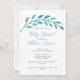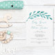 Une belle aquarelle turquoise feuille de vigne sur le titre de l'événement et le nom de la mère enceinte sur cette invitation simple mais élégante de baby shower de plage.Ce charmant invitation botanique turquoise est classe et minimaliste pour un emplacement en bord de mer près de l'océan.La typographie élégante apporte une touche chic pour une occasion d'île en été.