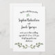 Ce bel faire-part de mariage minimaliste est doté de feuilles minimaux vert aquarelle sur un arrière - plan blanc propre. La typographie à la mode ajoute une touche de fraîcheur à cette invitation idéale pour les mariages de plein air rustiques, minimalistes ou élégants.