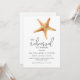Idéal pour un dîner de répétition mariage le long de la côte, ce design présente une étoile de mer dans le coin supérieur aux aquarelles vives. Le jumelage de texte d'invitation est moderne avec une élégance décontractée qui est à la fois de bon goût et hospitalier. Personnalisez le modèle de texte avec vos détails spécifiques. Cette invitation est un merveilleux choix pour des dîners de répétition dans les zones côtières, ou des dîners où l'on sert des fruits de mer.