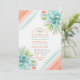 L'aquarelle perdue succulent le feuillage faire-part de mariage. Joli design d'invitation dans les tons verts bleus, verts et oranges. Personnalisez avec vos propres détails de mariage et photo au verso. Autres objets correspondants disponibles dans la collection d'art succulente. Photo originale de Sarah Trett pour www.mylittleedenweddings.com sur zazzle. (Photo de l'espace réservé avec l'aimable autorisation de Jonathan Borba@pexels).
