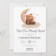 Cette invitation à baby shower d'ours en peluche à l'aquarelle présente une scène paisible avec un ours en peluche dormant au milieu de nuages doux et moelleux. Dans des tons doux de marron et de beige, le design crée une atmosphère sereine et neutre pour le genre, parfaite pour accueillir un nouveau petit. C’est une invitation charmante et fantaisiste pour un baby shower confortable d’inspiration boisée.