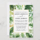 Aquarelle moderne Le Faire-part de mariage de verdure tropicale comprend des feuilles de palmiers et de la verdure botanique. Cadre Or.