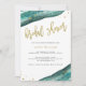 Ces élégantes et modernes invitations à la douche nuptiale comprennent des pierres de géode turquoises à l'aquarelle, avec une typographie et des éclaboussures en faux or.