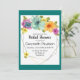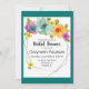 Un vaporisateur de fleurs dans les tons jaune, rose baies, turquoise, aqua, orange et lierre vert ornent cette invitation à la douche nuptiale féminine.