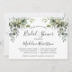 Moderne Elegant Aquarelle Botanique Verdure Bridal Shower Invitation Card comprend des feuilles d'eucalyptus, feuillage botanique vert, feuilles bleus poussiéreux et d'autres belles verdure botanique. Script de calligraphie. Bleu Dusty Back.